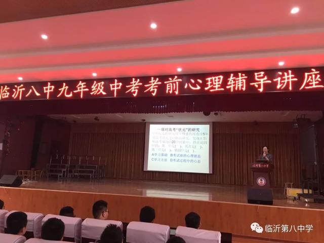 九年磨一剑,六月试锋芒。中考对于即将毕业的学生来说是人生的第一次重要考试,中考是一次筛选,也是学生的一次人生选择,面对人生的第一次大考,很多学生会出现焦虑、紧张、烦躁、压抑或过度兴奋等不同程度的心态表现,这些心态的表现会直接或间接影响学生考试的发挥,那么如何让学生尽量避免、减少或克服这些过度的态表现?临沂八中于6月8日组织了九年级全体学生聆听了学校心理专职老师王晓君的《从从容容中考去----中考考前心理辅导讲座》。