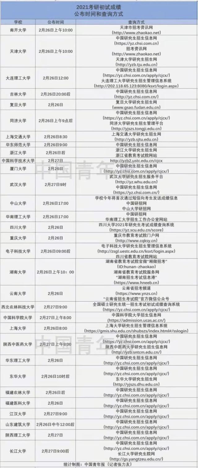 包括上海大学在内,中国青年报记者梳理发现,部分高校已明确考研初试成绩的公布时间和查询方式: